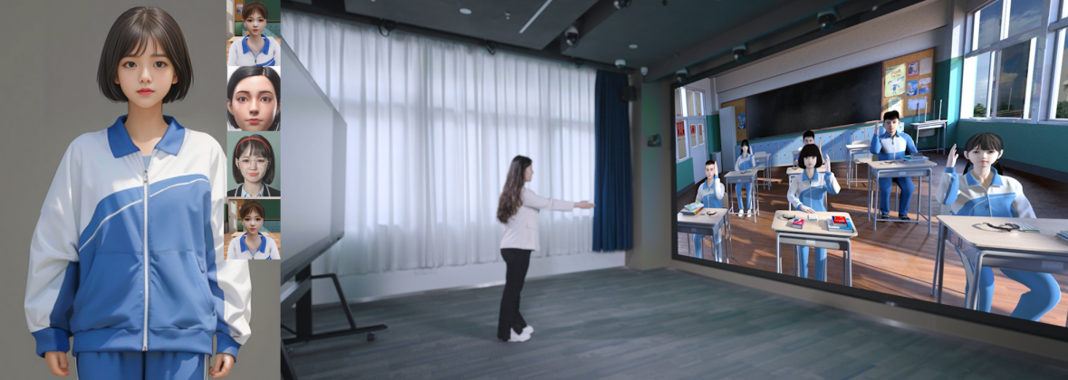 教育元空间的核心是大模型驱动的数字虚拟学生。通过开发具备多种性格和认知特点的数字人角色,用于模拟真实的学生行为和复杂的课堂交互场景。其关键技术包括大模型驱动的自然语言理解与生成、多模态数据实时采集与分析、情感识别与反馈机制、虚拟现实技术及智能互动算法、语音识别与合成、数字人的3D建模等。目前已经模拟了小学数学、高中数学、初中地理、初中物理、初中化学、初中信息技术课等具体学科课堂教学场景下的数字人认知模型。