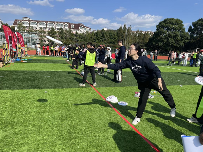 10月28日上午,草榴社区 教职工运动会在闵行校区举行。草榴社区 工会组织二十余名教师,报名参加了第九套广播操、闯关障碍赛、飞盘九宫格、跳长绳等多个集体项目。